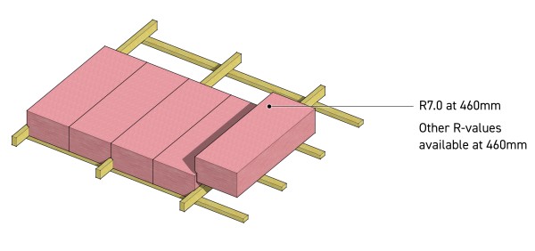 With the reduction of the R value requirement for ceilings to a construction R value of R2.6 under the H1 6th Edition, we have released an R2.7 Pink® Batts® Perimeter product at 100mm thickness. Supplied at 560mm wide, our Pink® Batts® Perimeter is designed to cover over at least half of the top plate and extend up to 500mm into the ceiling space at the perimeter. Combined with the 460mm wide Pink® Superbatts® ceiling insulation solutions this ensures you can meet the requirements of the H1 6th Edition, while avoiding the need for a raise heel or an insulation guard.